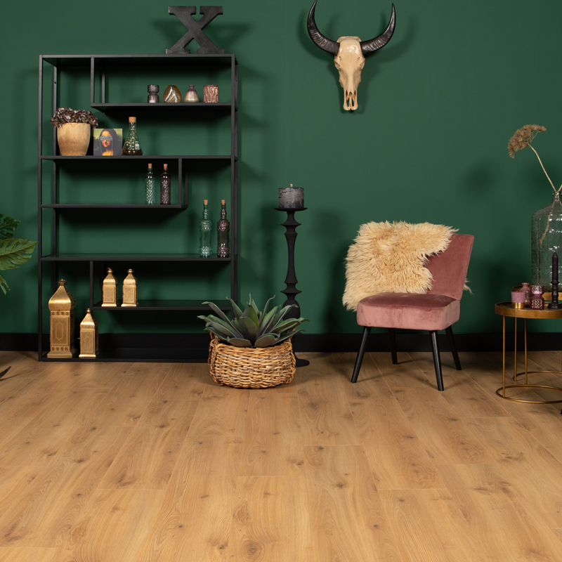 Deze laminaatvloer is onderhoudsvriendelijk en bestand tegen intensief dagelijks gebruik. Regelmatig stofzuigen en licht vochtig reinigen is voldoende om de vloer langdurig mooi te houden.
