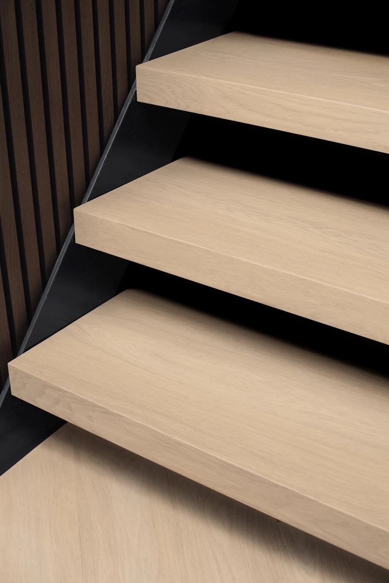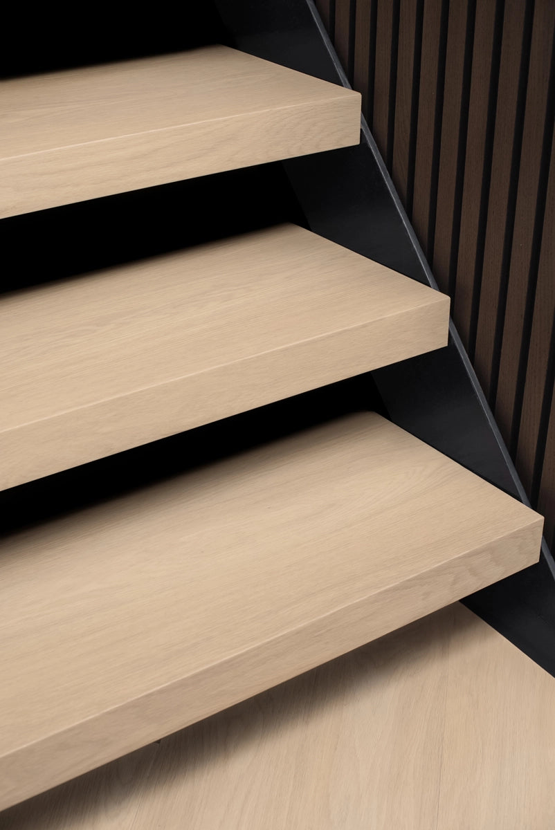 Deze dubbeltrede is perfect voor brede trappen, trappen met bochten of renovatieprojecten waar extra lengte nodig is. Zaag het paneel doormidden voor twee volledige tredes, of pas het aan voor wenteltrappen. Voor kortere treden is de 100 cm variant beschikbaar, en combineer met bijpassende ondertreden voor open trappen.