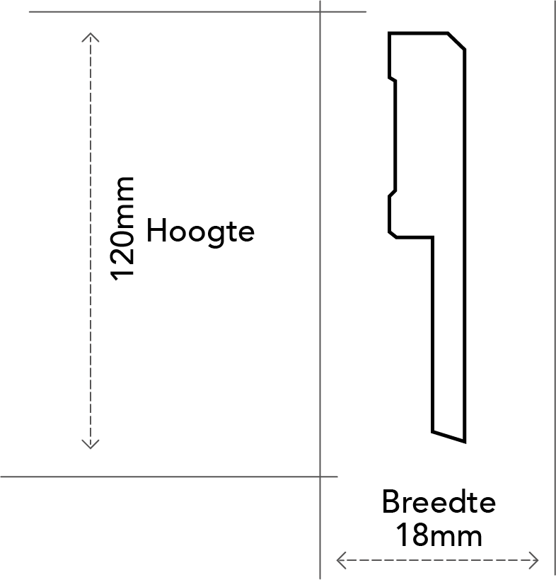 Bestel de MDF Renovatieplint modern 120x18 RAL 9010 tegen de laagste prijs met extra korting en gratis stalen bij Vloergigant.