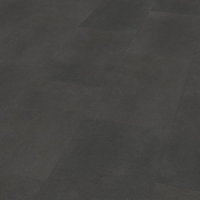 De Vivafloors Tegel 1910 Click is een hoogwaardige rigid click PVC vloer met een moderne, donkere betonlook. De egale, antracietgrijze kleur en de minimalistische uitstraling geven deze vloer een strak en industrieel karakter, vergelijkbaar met een gietvloer. De tegels zijn voorzien van een speciale 'embossed' structuur en een supermatte afwerking, waardoor ze de look van echt beton combineren met het comfort van een zachte PVC vloer.