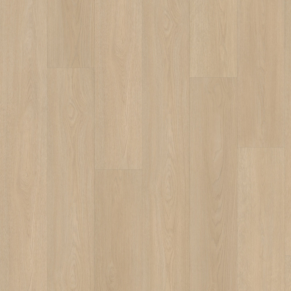 De lichte beige-bruine eikenkleur met voelbare wood touch structuur en subtiele noesten geeft een realistische houtuitstraling, terwijl de ultra-matte toplaag beschermt tegen krassen, vlekken en slijtage. De lange XL-planken zorgen voor een rustige, luxueuze sfeer.