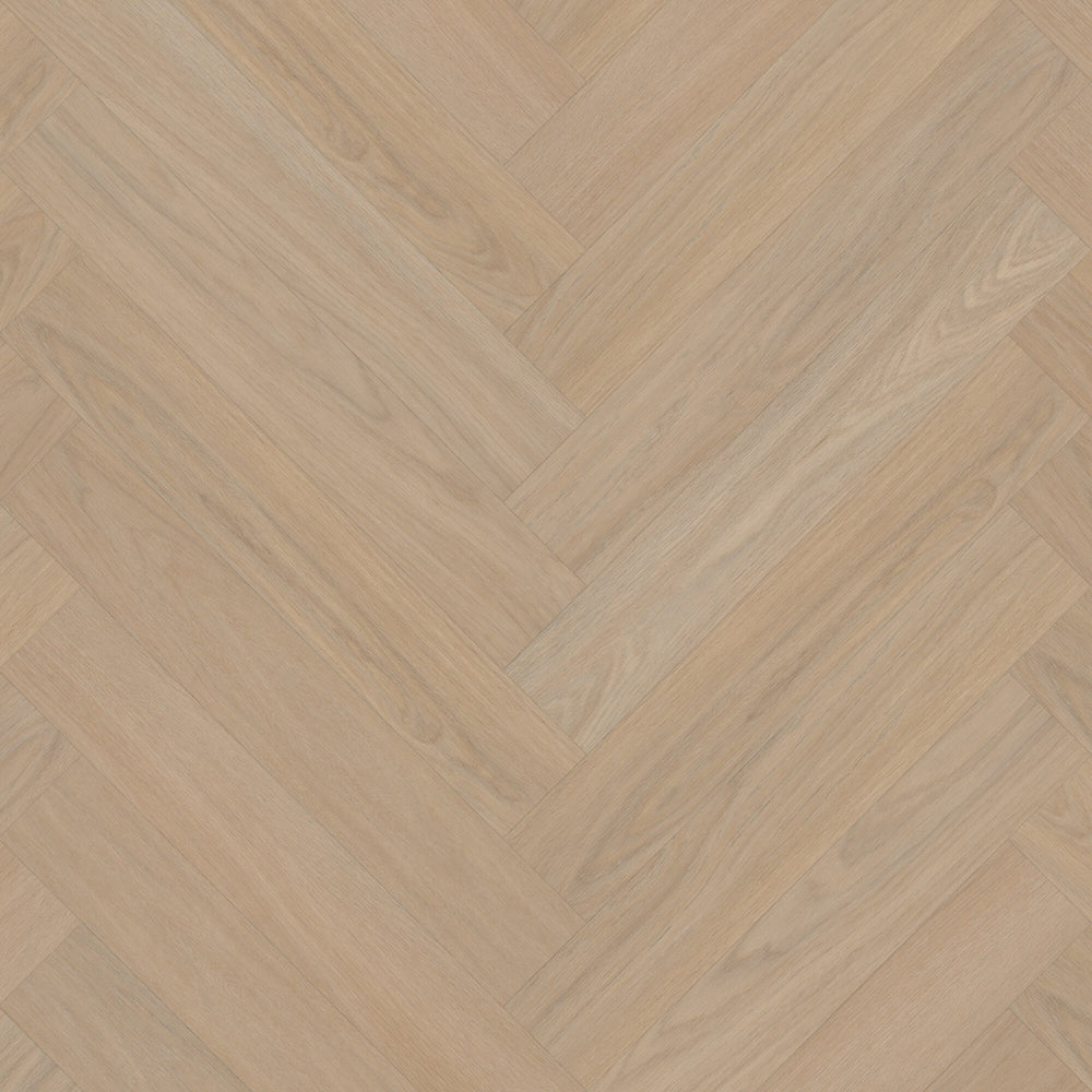 De Vivafloors Walvisgraat 7810 is een luxe plak PVC vloer (dryback) die licht eikenhout combineert met een royaal walvisgraatmotief. Dankzij de extra grote planken ontstaat er een opvallend, ruimtelijk en rustig effect in huis. De vloer is afgewerkt met een extra matte Wood Touch Embossing, wat zorgt voor een natuurgetrouwe houtbeleving. Een ideale keuze voor wie de klassieke charme van visgraat zoekt, maar dan in een modern, groots en weids jasje.